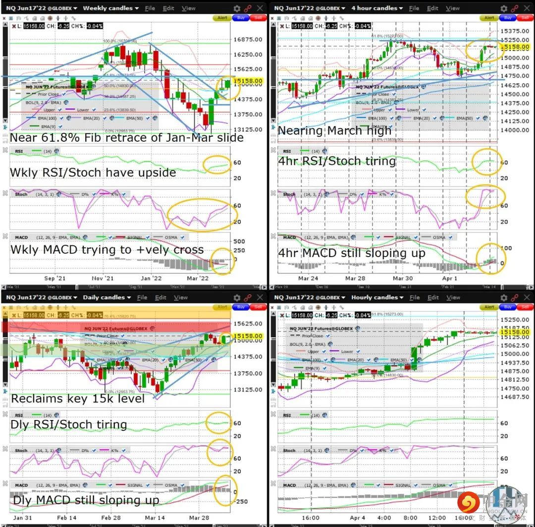 纳斯达克100指数期货(NQ)周线图/日线图/ 4小时图