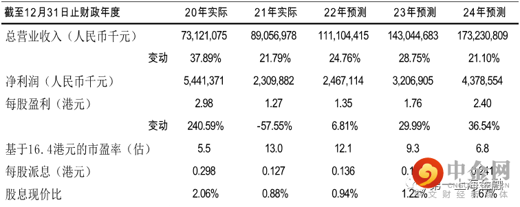 结合我们对近年电子行业各品牌各产品评测情况,我们认为两大移动操作系统阵营表现趋于分化,北美客户产品力进一步夯实。随着核心产品份额的提升以及新结构件导入量产,我们预期公司今年在北美客户的收入体量有望更上一个台阶,中长期将持续受益于客户带来的收入和盈利规模的双提升,与客户共成长。基于2022年的盈利预测,我们给予17倍的PE估值中枢,对应目标价23.00港元,买入评级。
