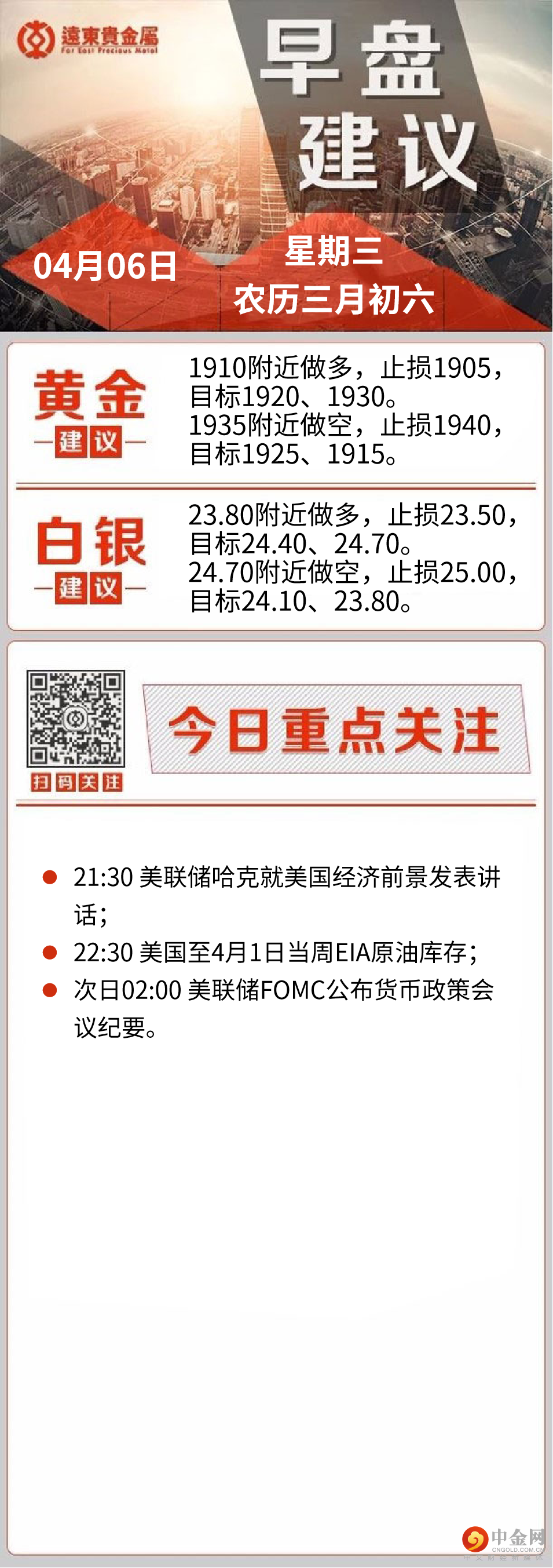 展望本交易日将迎来周四凌晨02:00美联储将公布FOMC货币政策会议纪要。此前美联储主席鲍威尔曾表示,美联储会在3月会议上设定资产负债表缩减的上限。美联储会议纪要,偏向鹰派的可能性较大,纪要公布前,金价可能会面临进一步下行压力。因此,投资者料能从这份会议纪要中获取更多缩表方面的信息。另外,2023年FOMC票委、费城联储主席哈克将在今晚21:30就美国经济前景发表讲话。还有美国和G7将于周三宣布与俄罗斯有关的全面新制裁方案。继续关注俄乌局势相关消息和西方进一步制裁相关消息。美国的对俄新制裁将包括禁止在俄罗斯进行新投资,加大对俄罗斯金融机构和国有企业的制裁力度,并制裁俄罗斯政府官员及其家庭成员。