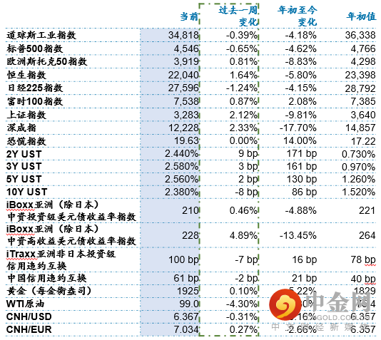 美债市场再度闪烁经济衰退信号,2-10年期收益率曲线一度出现2019年以来的首次倒挂。美国抵押贷款利率再次飙升,达到2018年末以来最高水平;上周首次申领失业救济人数高于预期,但仍处于历史底位。纽约联储行长Williams表示,加息步伐应该由经济数据来决定,必要时美联储可能一次加息50基点。华尔街调高美联储升息预期,花旗预测美联储未来四次会议都将加息50基点。