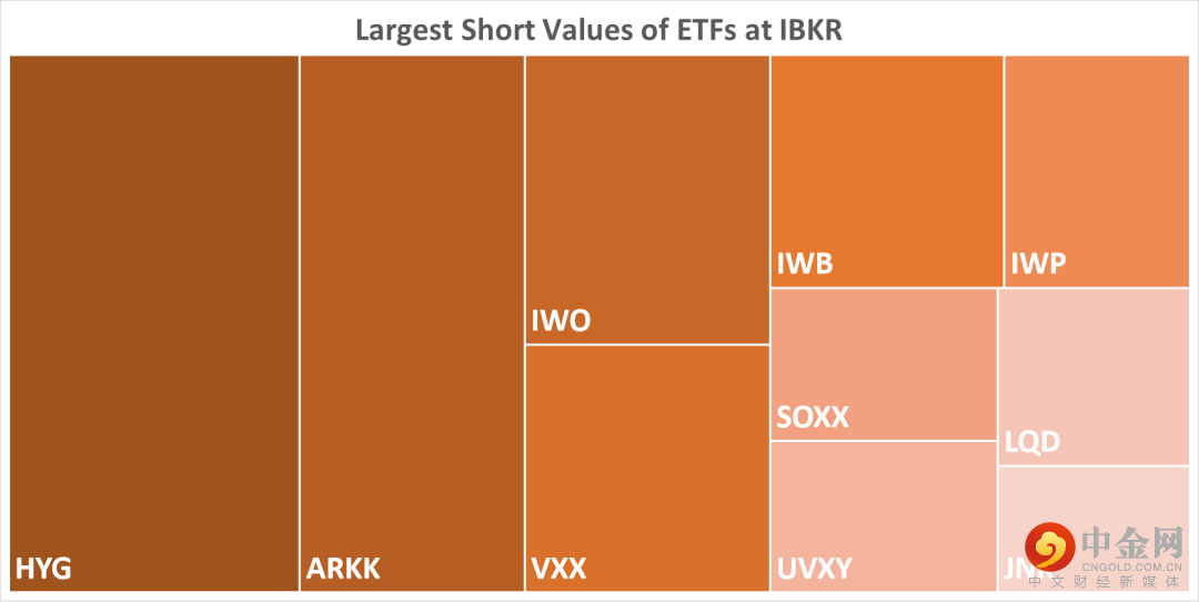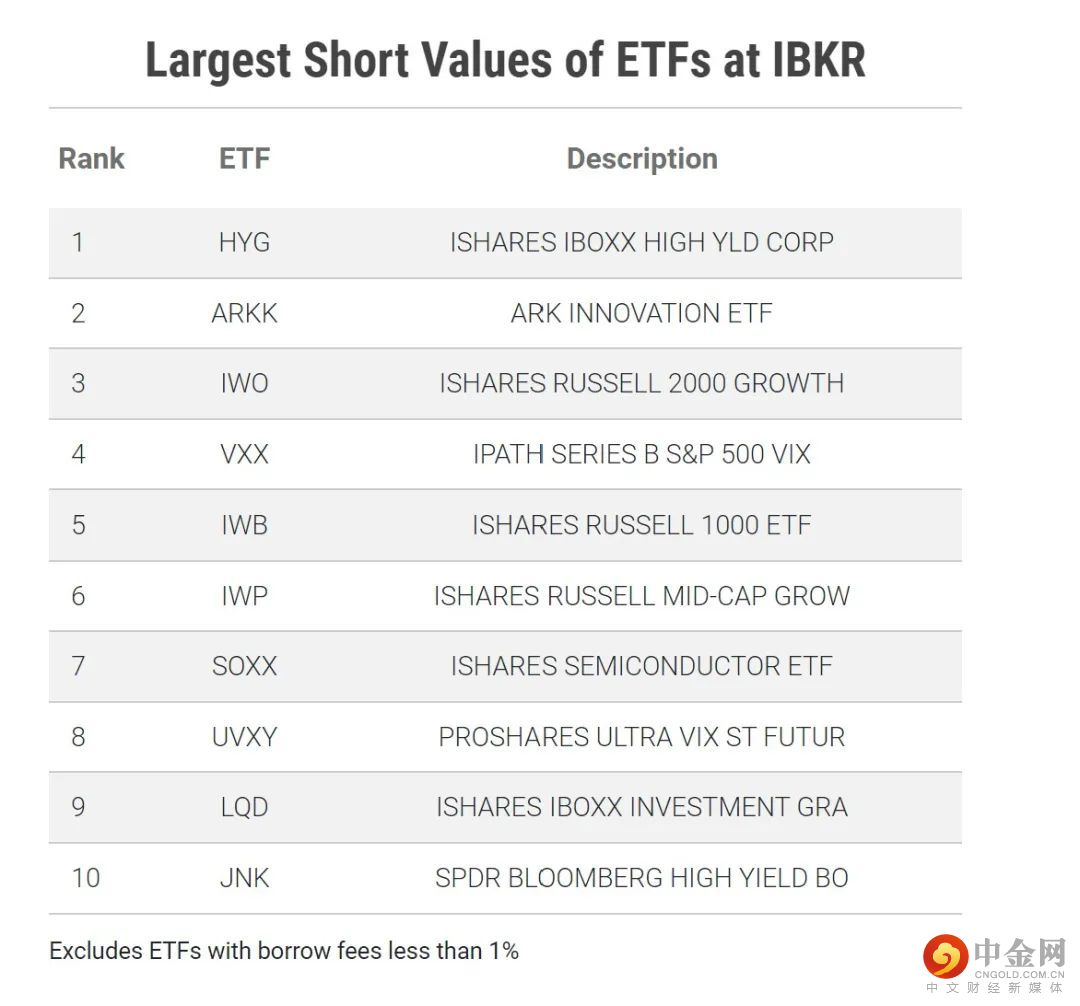 下表中列出的是2022/3/31具有最大做空值的10个ETF。
