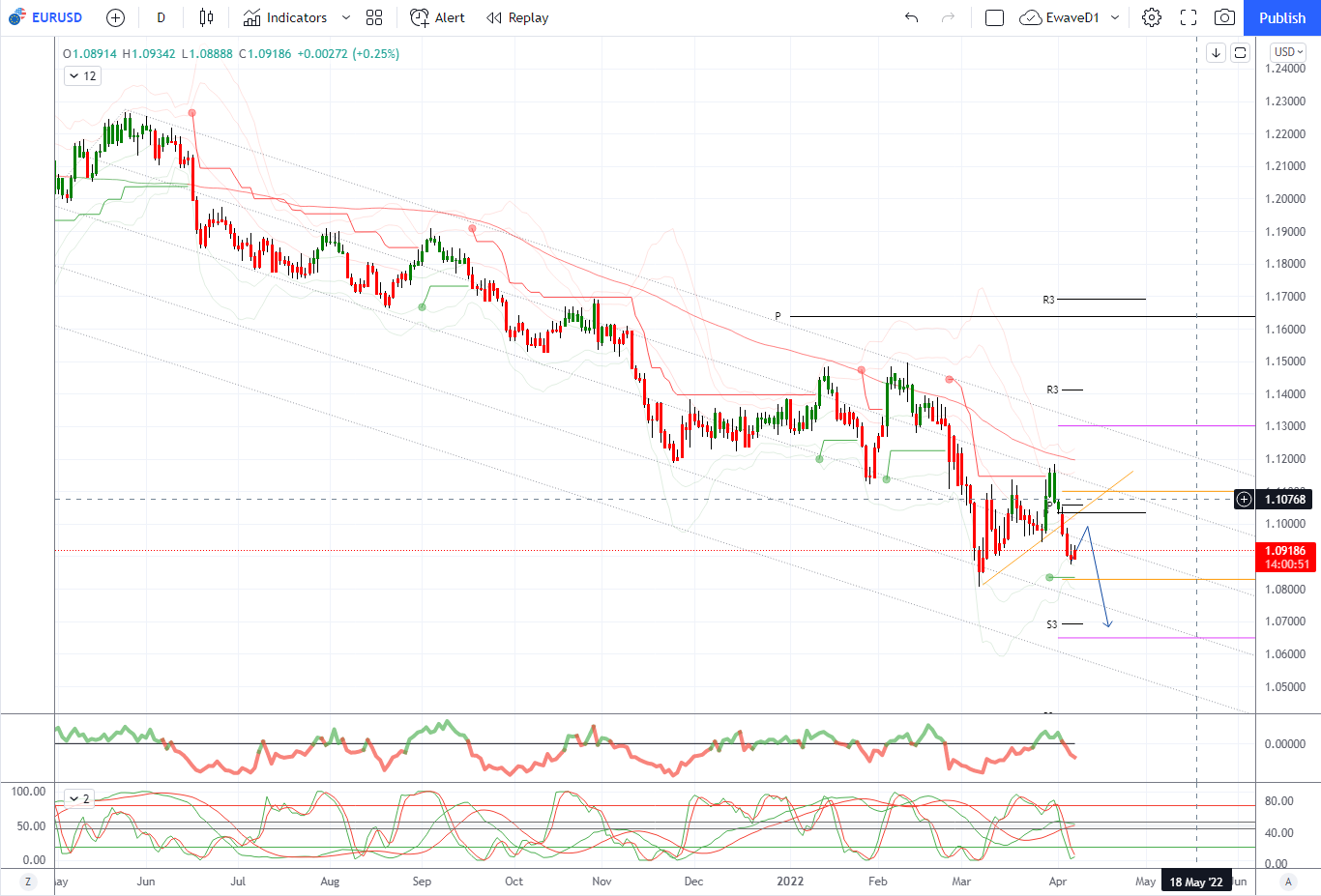 支撑位在 3 月 7 日趋势低点 1.0806,多头位于 1.0850 上方