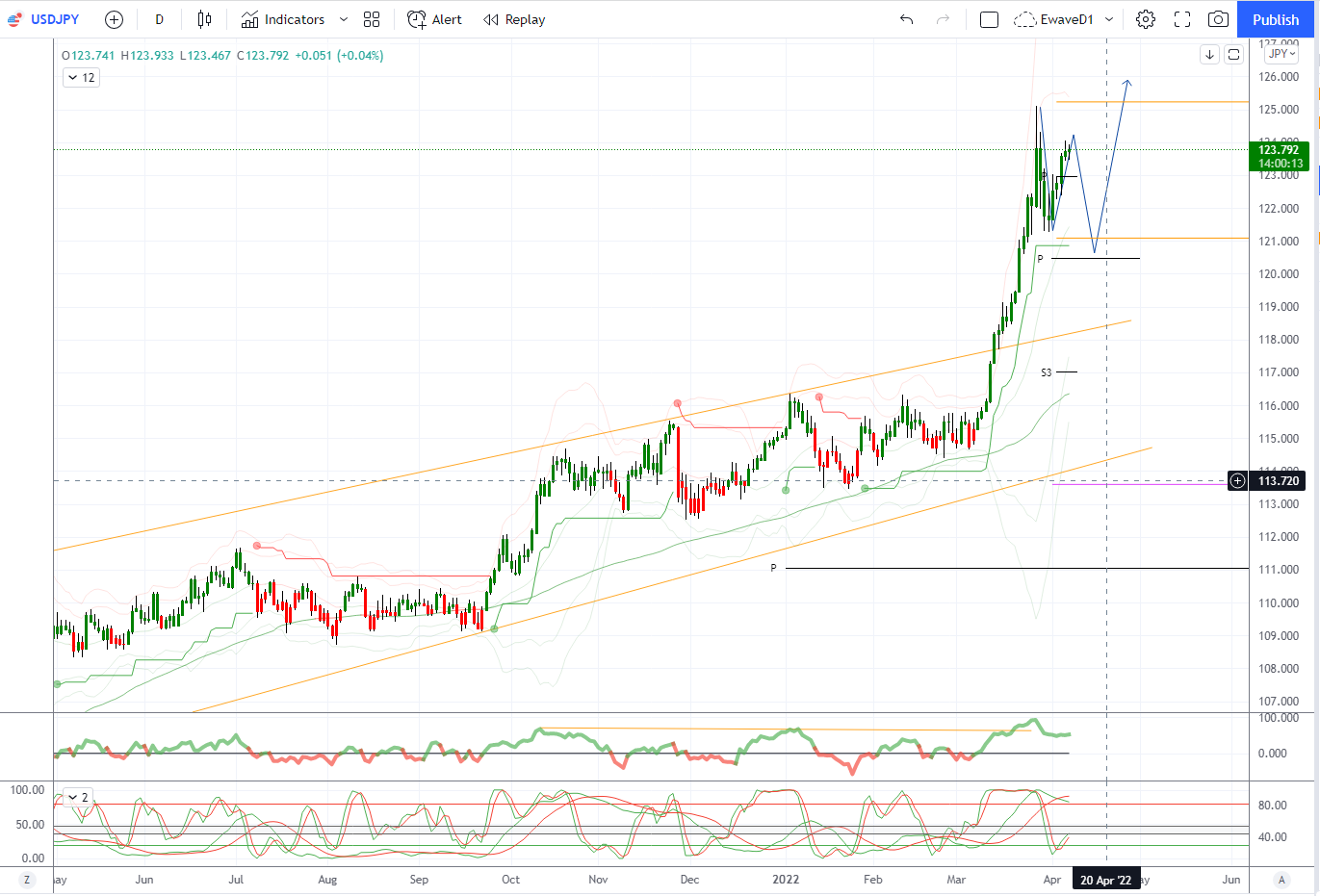 美元/日元技术支撑来自上升的每小时一云,现在位于 123.16-52