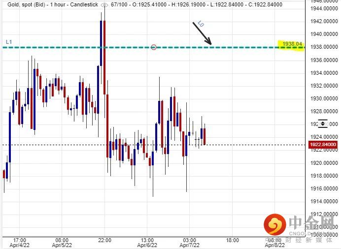 可以部署在$1,938美元左右建立淡仓盘,短线看淡金价一线至$1,909美元水平后止赚,止损在$1,946美元。