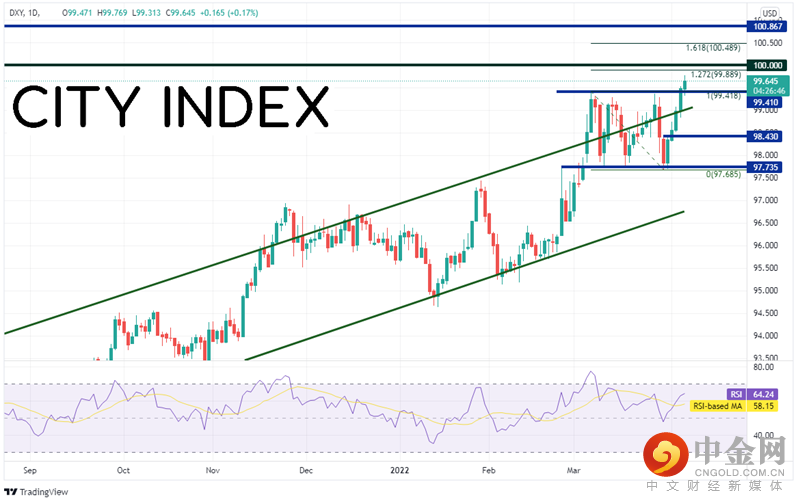 3月16日FOMC会议的记录披露了一些好消息,但都是旧闻,美联储官员们最近的评论几乎众口一词指向强硬前景。但美元指数还是继续上攻100.00,而英镑/美元尝试考验1.3000附近。如果美联储官员继续透露强硬信号,前面提到的价位可能很快到达。