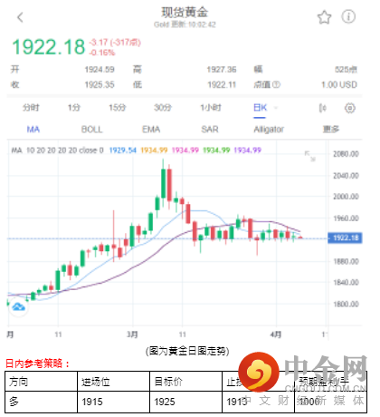 前一个交易日黄金上涨0.14%,收盘来到1925.88。