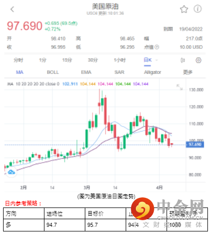 前一个交易日原油下跌-2.76%,收盘来到98.34。
