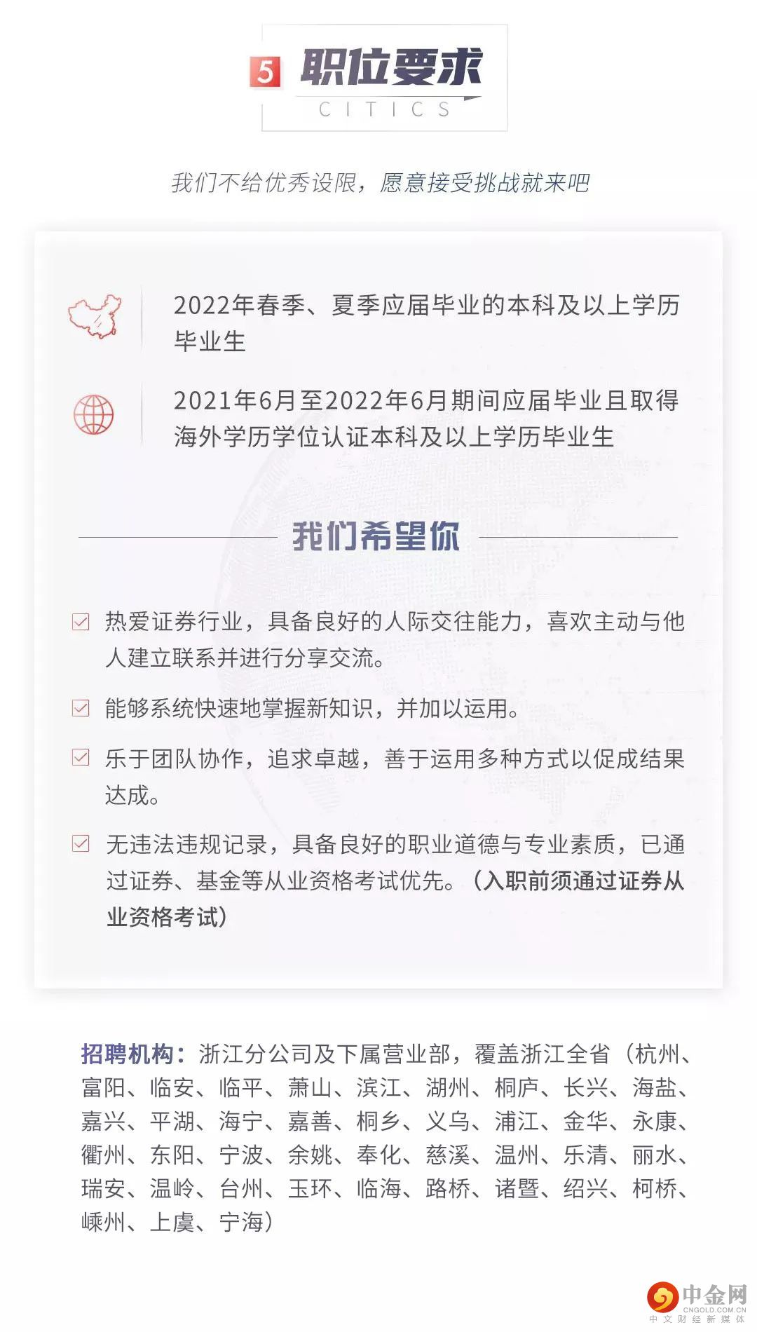 网申倒计时1周 | 中信证券浙江分公司2022年春季校园招聘网申即将截止
