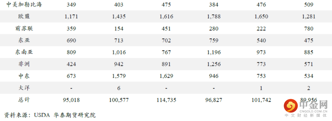 出口方面,ITS数据显示3月马来西亚棕榈油出口135万吨,环比增加9万吨。其中,3月出口至中国16.6万吨,环比增加5.8万吨;出口至印度34.5万吨,环比增加9.8万吨;出口至欧盟33万吨,环比减少10万吨。3月份马棕出口呈现季节性回升趋势,尤其中国和印度进口采购增加,预计3月马棕出口在120万吨附近。
