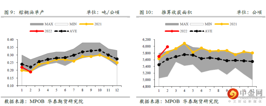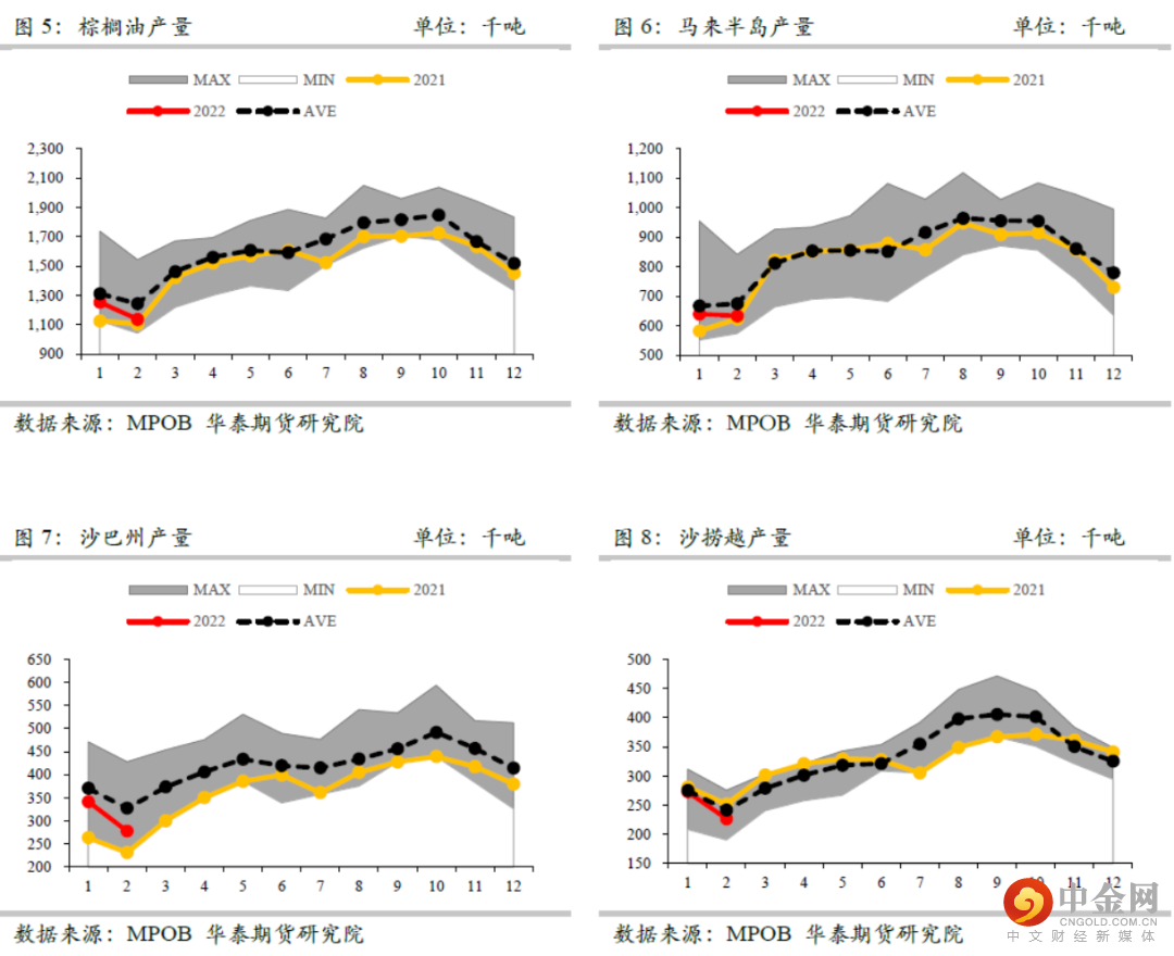 产量方面,市场机构UOB数据显示,3月沙巴产量幅度为9%-13%,沙捞越产量幅度为16%-20%,马来半岛产量幅度为22%-26%,全马产量幅度为18%-22%。根据该数据估算,预计3月马来西亚棕榈油产量在135万吨附近。