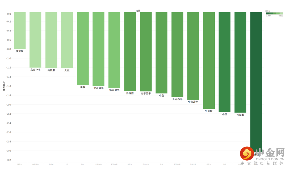 申万风格方面,所有细分风格均有不同程度的下跌;其中,微利股跌幅最大,下跌超3.0%;绩优股表现出相对强的抗跌属性,跌幅不到1%。整体来看,市场的风险偏好几乎降至“零点”。