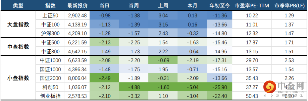 大、中、小盘指数方面,大盘指数抗跌能力较强,表现好于中、小盘指数;其中,上证50下跌0.98%、中证100下跌1.13%,表现均好于市场指数;而小盘方面,国证2000跌幅居前,下跌2.49%,收于8,006.04点;双创均表现弱势,分别下跌2.12%、2.10%。