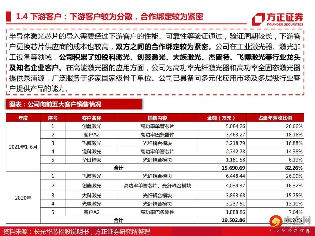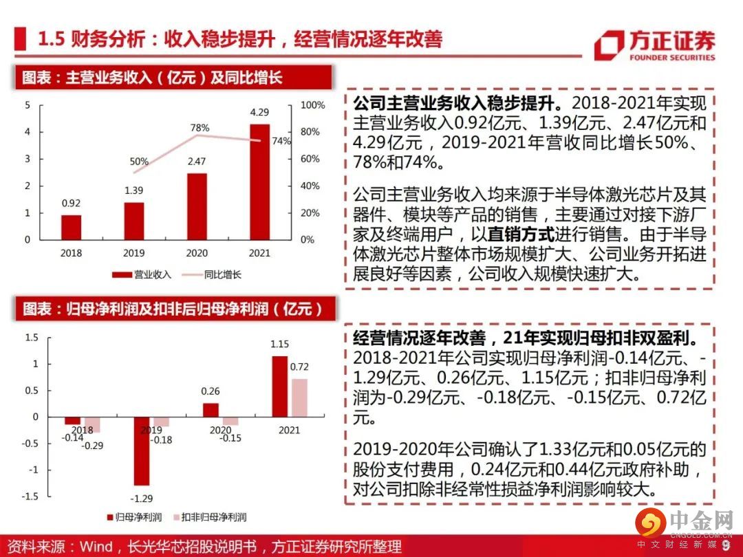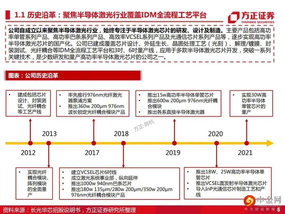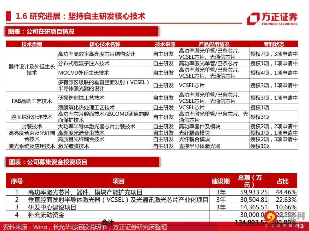 高功率半导体激光器芯片、VCSEL芯片、高速光通信半导体激光芯片及相关光电器件和应用系统的研发生产和销售。投资要点: