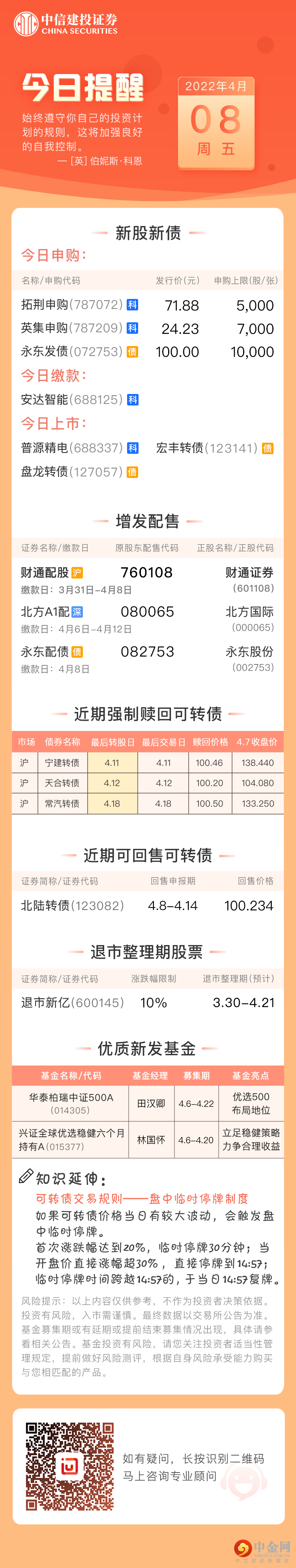 今日投资提醒(4月8日)