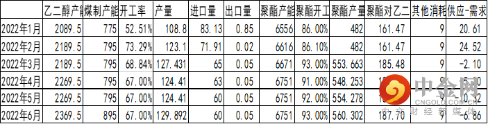 表4-1:2022年EG供需平衡表 (万吨)