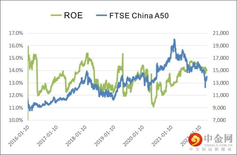 In the past five years , the average value of PE is 13.9 times , and the average value of PB is 1.95 times . But since 2019 , its valuation has rebounded from a low level and has risen all the way . The current PE is 14.34 times , which is in the 65% quantile; 2.01 times PB , which is in the 75% quantile in 6 years . Compared with the Shanghai Stock Exchange 50 and the CSI 300 Index, the ROE of the A50's return on equity is larger, and the current value is 14 .