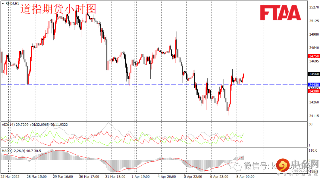 周四美股三大指数小幅收涨,道指涨87点或0.25%,美联储官员及鹰派的会议纪要后继续放鹰,同时俄乌危机持续发酵,道指盘中低开低走,但午盘震荡走高。日图收出下影小阳,显示短期下方支撑明显,日图级别或维持震荡略偏多。道指期货方面,昨日亚欧盘震荡反弹,但美盘早段跳水创出新低,随后快速拉回,小时图底背离迹象明显,日内或延续震荡盘升。今早亚盘道指期货震荡后当前上涨,操作上可现价附近,或逢低在34450附近轻仓多,止损34380,目标34750。