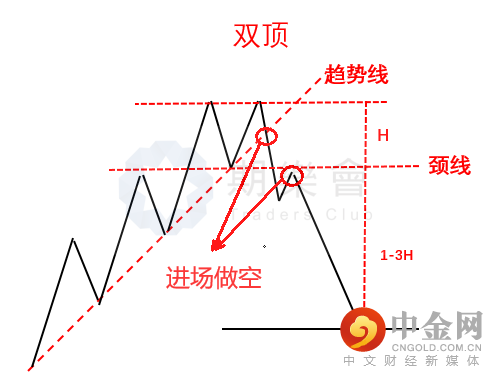 双重项底反转是指在价格顶部部形成的两个波峰,人们也常称之为“M”型反转。