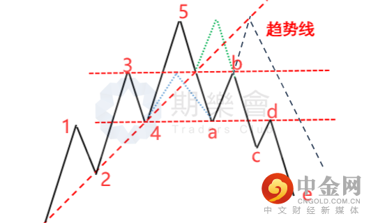 如上图所示,如果b浪反弹位置正好在3浪的高点价格附近,那么就有可能构成头肩顶形态;如果5浪受到利空消息影响出现萎缩,就有可能构成三重顶形态;A浪如果在利多消息刺激下,反弹力度过高,到5浪高点价格附近就可以构成双顶结构;a浪回撤过大,破5浪低点,就是一个典型的V型反转!