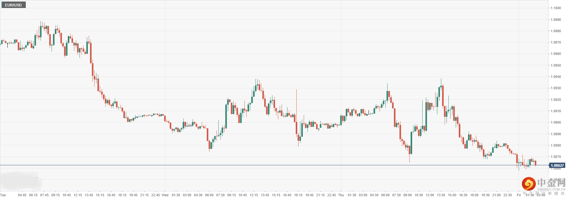 欧元兑美元周四收盘小幅震荡后,今日开盘跌0.13%至1.0862,因欧元区经济数据普遍持平,伴随美元受美联储鹰派强劲,导致欧元下行疲软承压。