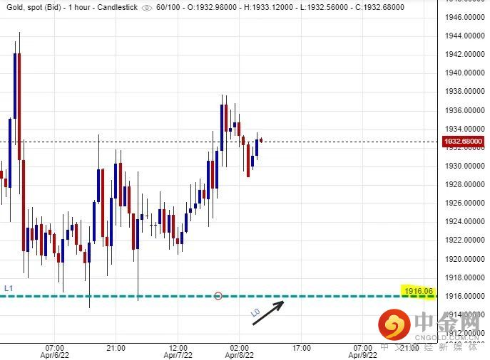 可以部署在$1,916美元左右建立好仓盘,短线看高金价一线至$1,945美元水平后止赚,止损在$1,908美元。