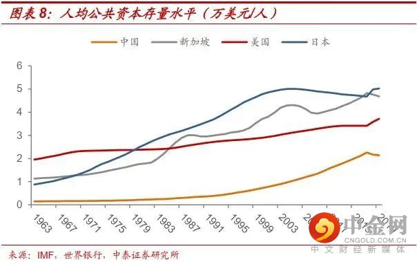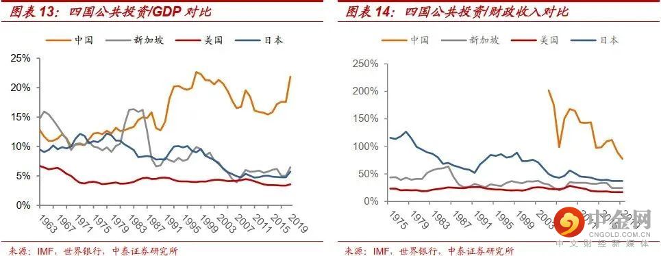 从公共投资占GDP的比例看,2019年我国为22%,高于新加坡1984年水平(16%)、美国1968年水平(6%)和日本1978年水平(12%)。
