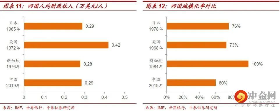 从城镇化率看,2019年中国城镇化率为60%,低于新加坡1984年水平(100%)、美国1968年水平(73%)、日本1978年水平(76%)。