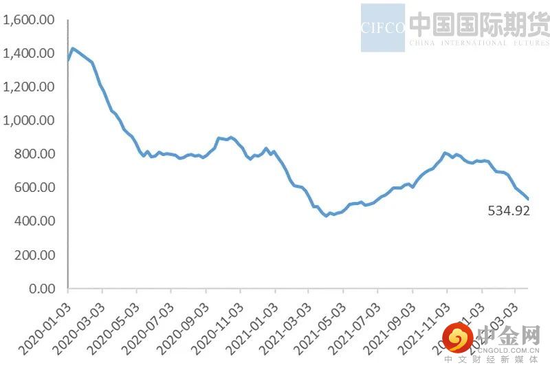不锈钢库存情况:MYSTEEL数据显示,截止3月31日,全国冷轧300系社会库存35.63万吨,相较于2月底有所下降,但相较前几周出现明显累库。其中佛山冷轧300系库存量为8.7673万吨,周度环比上升16.8%,无锡市场300系冷轧库存36.5万吨,亦较上月下降。出现较上月库存下降的主因是3月上半月终端需求较好,走货顺畅的情况下,出现明显降库。但3月下旬随着疫情管控,周环比上升明显。