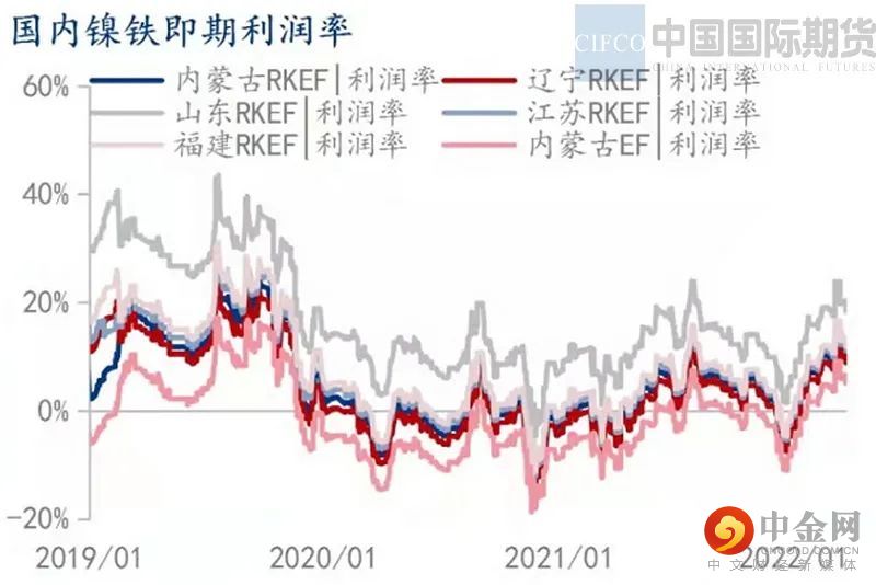 受到镍矿价格不断上涨,国内RKEF工艺镍铁厂即期成本增加,最高成本在145.8元/镍附近,最低利润率9.92%。