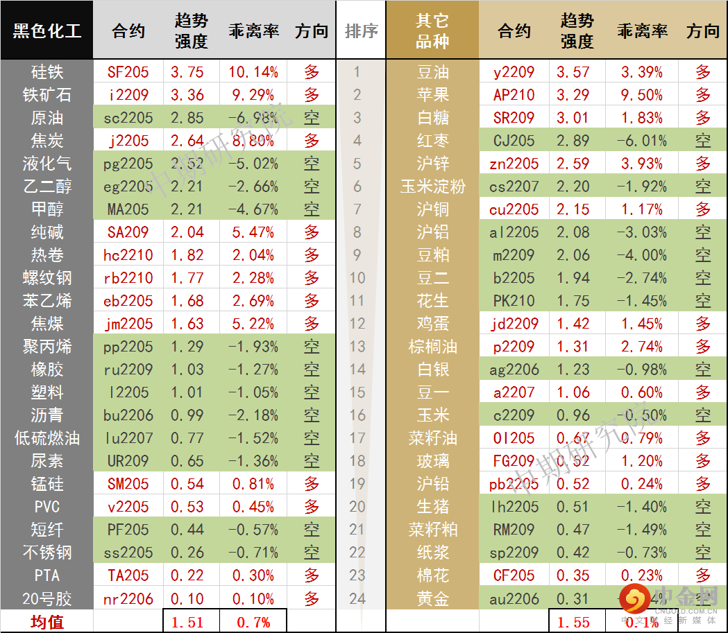 中期商品趋势榜 | 豆油多头动能增强(0408)