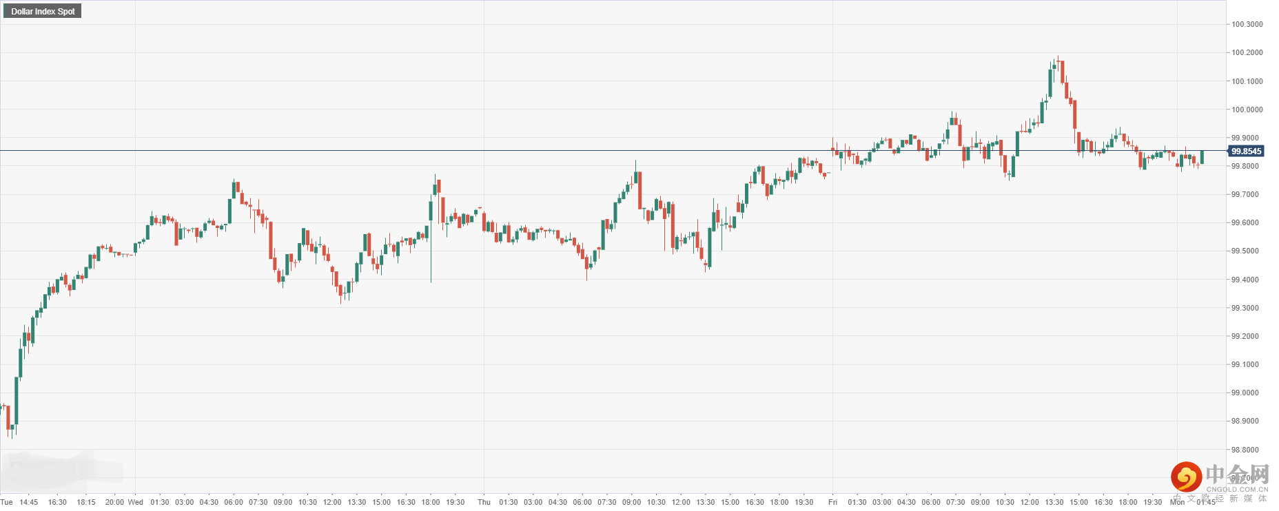 美元指数上周五盘中冲高回落后,今日开盘盘整在99.85附近,因上周尚未有较强劲数据提振,伴随市场已大致消化美联储鹰派信息,尾盘日内变动起伏不大使得美元上行空间有限。