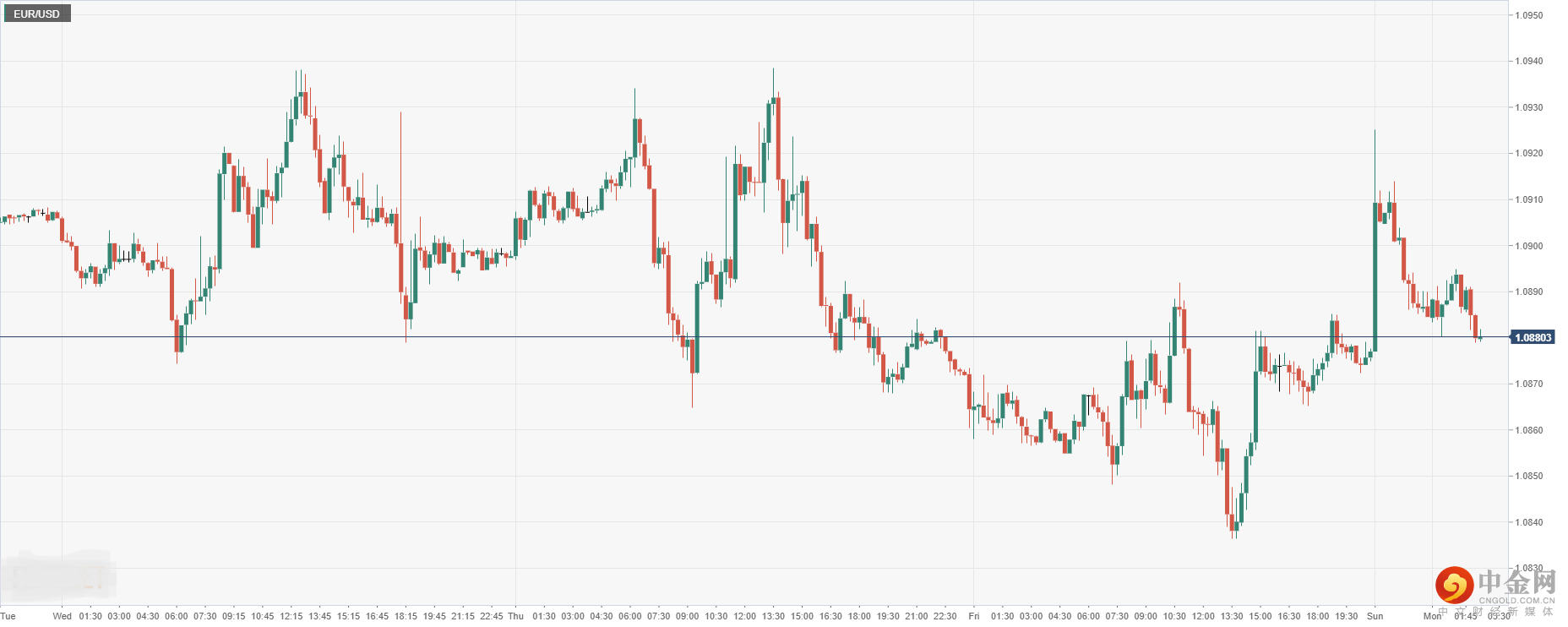 欧元兑美元上周五收盘大幅冲高后,今日开盘涨至1.0880,因美元上涨幅度有限,促使欧元短线上行支撑提振。