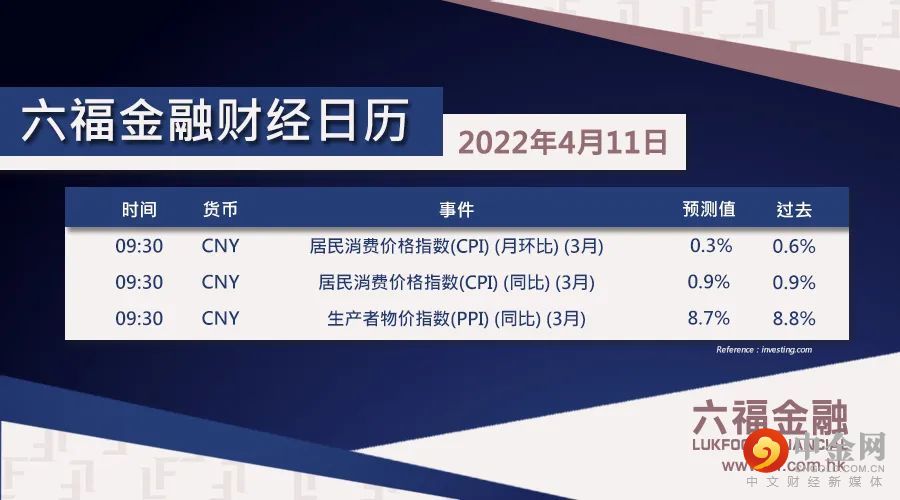 【六福金融财经日历4月11日】投资者请留意!今日将公布以下经济数据: