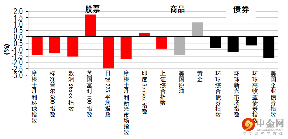 多数欧洲股市上周报跌,央行的鹰派态度和中国最新的疫情发展使市场气氛受压,周期股表现乏力。道琼斯欧洲50指数跌1.5%,法国CAC 40表现欠佳(跌2.0%),国内政治风险加剧。英国富时100指数上周逆市上扬,收市升1.7%。