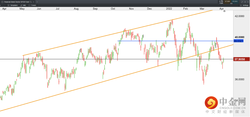 美股财经精选行业指数 Financial Select Sector SPDR Fund(XLF)—— 日线图(4月8日)