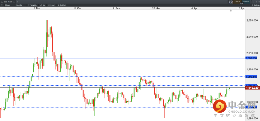 黄金兑美元 XAUUSD —— 4小时图(4月8日)
