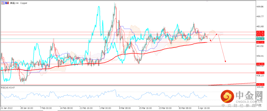 日图上看,虽然铜价的K线走势在短期内或有一定支撑,但整体并不有利于多头。另一方,不断有机构近期增加了铜的看空头寸。基本面来看,在工业原材料及能源高企的宏观环境下,将不断提升物价上涨的压力,同时抑制有效需求和引起货币政策超预期的紧缩,而全球经济衰退的可能性将增加。因此预计未来铜价将打破窄幅震荡行情,而最小的阻力或是下行。