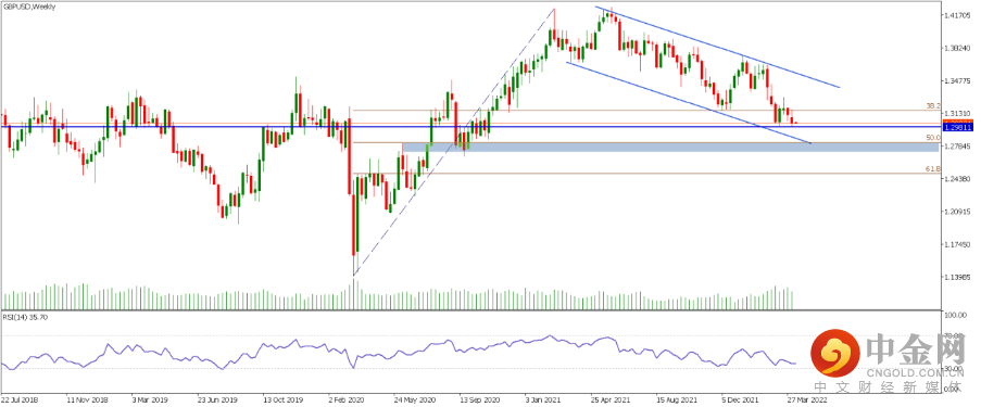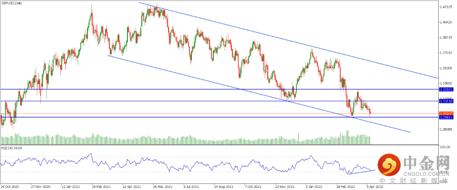 1.镑美(GBPUSD): 技术面日图可见,目前镑美仍然处于2021年3月始的下行通道内,上个交易日价格最低触及1.2981左右位置,突破了2022年3月14日的低点,但是收盘价还是在1.3000前后高于该位置,RSI指标显示底背离,今日重点关注1.3000左右关键位置的争夺。我们的偏见是如果后续价格企稳在1.3000以上,则镑美还是有短线反弹的可能性,上方潜在压力位在1.3160和1.3290左右。反之,如果价格跌破1.3000,则可以保持看空,下方潜在支撑位在周图上1.2820-1.2700区域,同时也是斐波那契50%回调位和通道下沿附近位置。