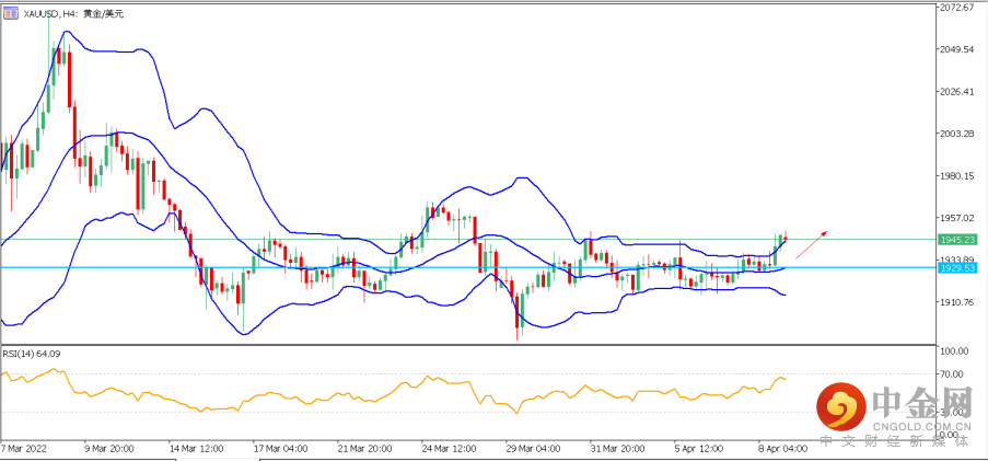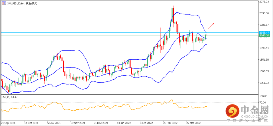 3. 黄金(XAUUSD):黄金上周五上涨至一周新高,价格突破日图布林带上轨,目前有延续上涨的迹象。再结合4小时分图,日内关键看涨支撑位于布林带中轨1927-1930处,若价格稳于该区域上方运行,则可先看上方潜在目标1955-1957区域,若强势突破,后市可能再次向1975发起挑战。反之,若价格跌破1927-1930区域,则可能再次回归盘整走势,下测1913-1915区域。