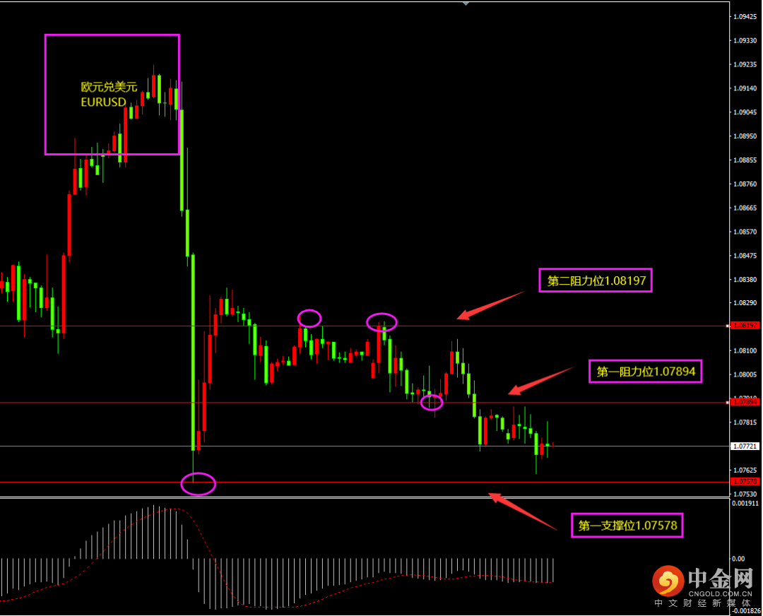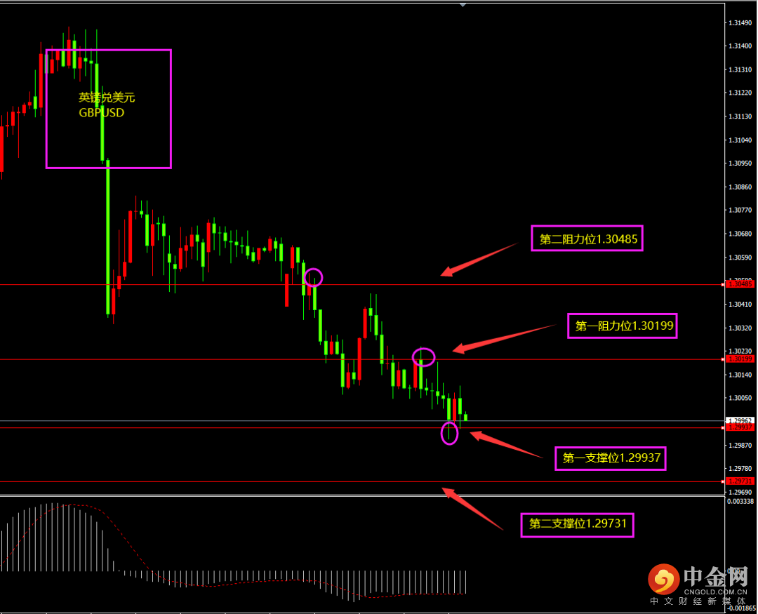 天图英镑收小阴线,价格继续回落,但实体部分较小,空头力度不强,短期接近大阳线开盘价,支撑仍在,日内更多试探性以逢低看多为主。小时图英镑期间连续阴线下滑,空头仍在,但MACD并未大幅下行,空头力度有所减弱,而短期底部有部分阳线产生,多头增强,日内更多以逢低看多为主(大阳线不出,多单不入)