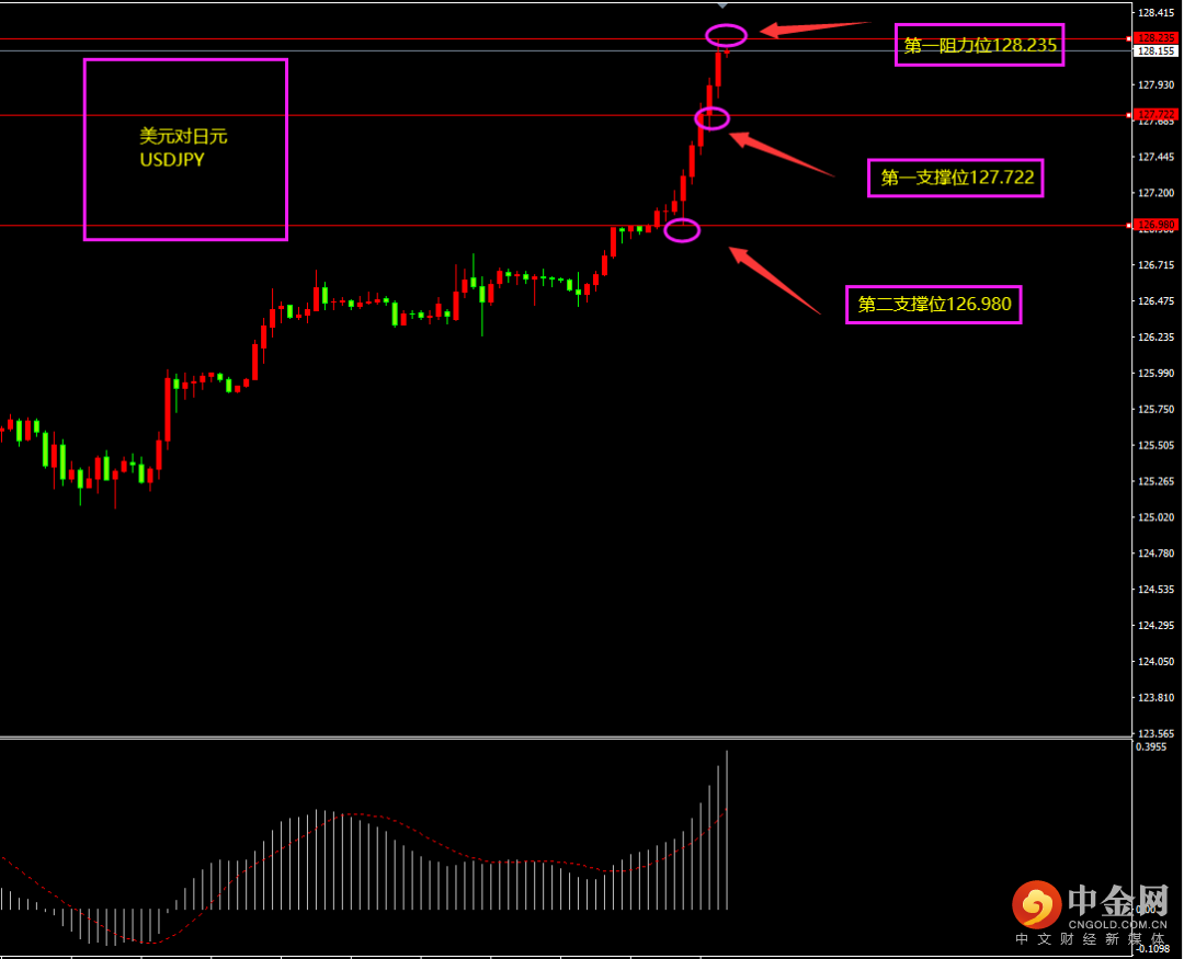 天图美日收小阳线,价格继续冲高,多头仍保持强劲,短期回调力度较弱,空头不强,且MACD并未大幅下滑,日内更多以逢低看多为主。小时图美日期间连续阳线拉升,MACD位于0轴之上,多头占优,短期上方未形成大阴线下滑,空头不强,日内更多以逢低看多为主。(大阴线不出,空单不入)
