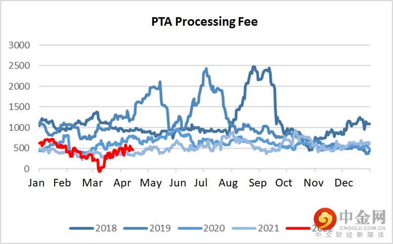 The average processing fee of PTA last yearwas 500 yuan/ton. In March, the processing fee on the spot market was in therange of 200-300 yuan/ton, which was at the lowest position in history. Withthe overhaul of Yisheng Petrochemical, the operating rate of TA will be reducedto less than 70%. Under the pessimistic demand expectation, it is still in thestate of destocking and the overall pattern is strong. There is still potentialfor increasing processing fees in the later stage when demand improves.