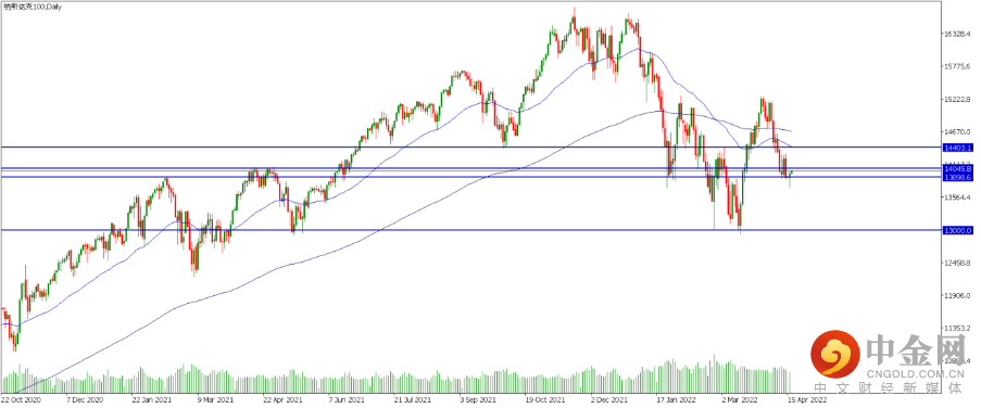 1.纳指(NAS100): 技术面日图可见,纳指昨日收出小锤子K线,暂时企稳在13898-14045支撑区间,但成交量偏低,并未出现放量止跌的现象。总体来说,纳指目前是美国三大股指里最弱的一支,后市可能是一个震荡偏空的格局,上方短期压力位在50日均线和支撑阻力互换位14400左右。如果价格下破13898区域后,空头第一目标位可以看向13000。