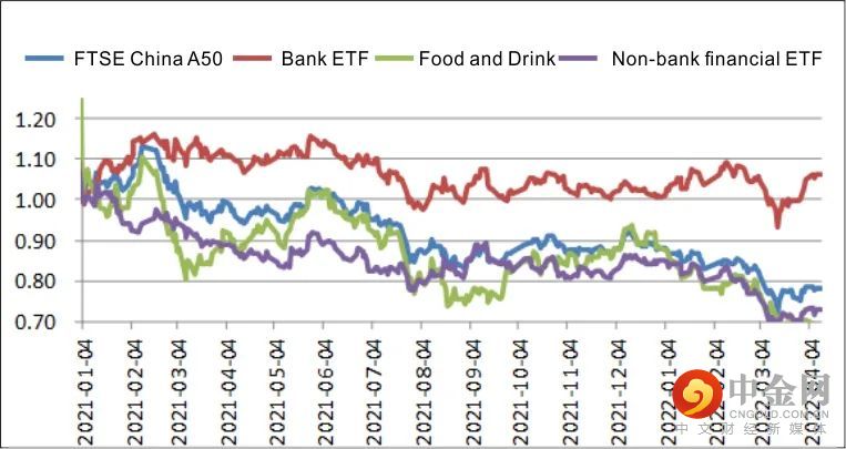 Figure 3 Trends of the three major sectorsof the FTSE China A50 Index