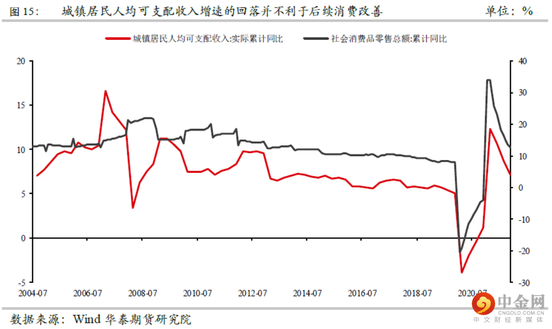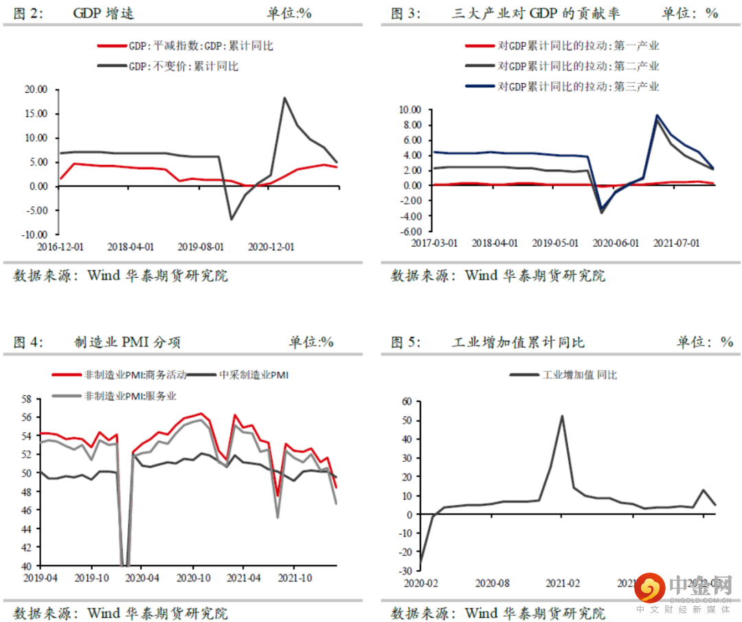 季度GDP增速有所放缓。2022年一季度GDP当季同比录得4.8%,较4%的前值有所改善,但环比增长1.3%,较1.5%的前值有所放缓。受国内疫情反复影响,居民收入和就业明显承压,2022年一季度城镇居民人均可支配收入累计同比增长5.4%,前值为8.2%。3月的城镇调查失业率和31个大城市调查失业率分别录得5.8%、6%,前值分别为5.5%、5.4%,均较前值有明显上升,消费端的长期驱动力进一步削弱。