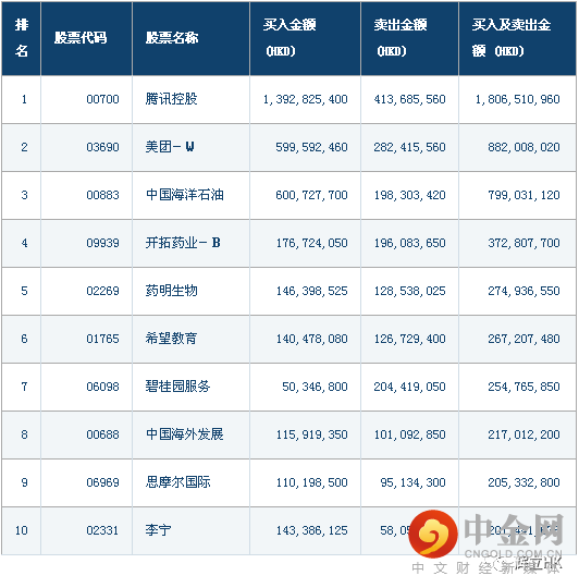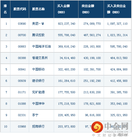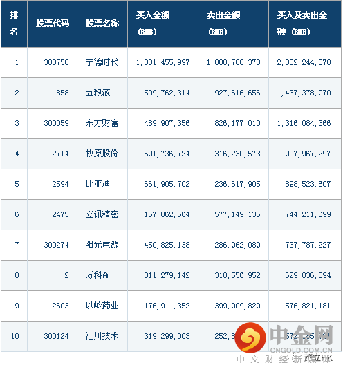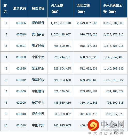 十大成交活跃股