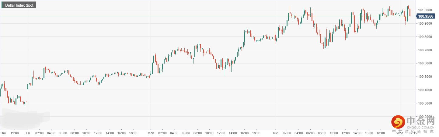 美元指数周二收盘小幅上升后,今日开盘涨0.17%至100.95附近,由于10年期美债收益率触及2018年底以来最高至2.93%,使得美元上行支撑提振。