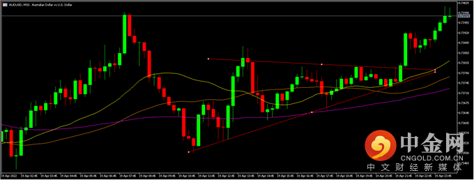 对此,澳联储董事会暗示,联储将加息议程从6月提前至5月,并非没有可能性。所以,在纲要发布后,澳元兑美元(AUDUSD)、澳元兑日元(AUDJPY)以及澳元兑人民币(AUDCNH)均录得了持续上涨。