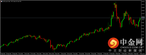 美国WTI原油(USOIL)日线图,其价格在1月2日至3月8日间,录得了68%的涨幅。