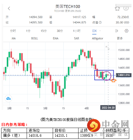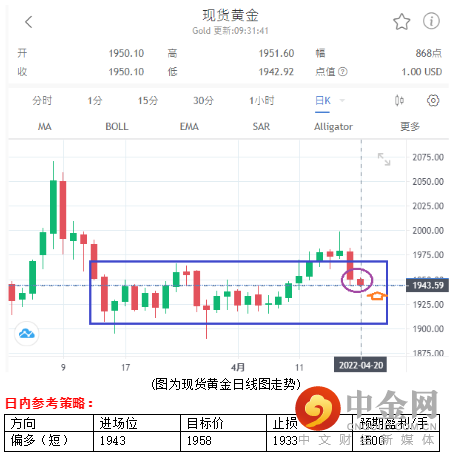 由于昨晚公布的美国3月份新屋开工数出人意料地上升至2006年以来的最高水准,数据发布后,美国国债收益率全线飙升,基准30年期收益率三年来首次升破3%,加上美元指数一度涨破101,以及国际油价转跌与美股上涨,导致黄金承压下行。不过,继世界银行大降全球经济涨预期后,国际货币基金组织(IMF)也跟进,大幅下修全球经济增长0.8%至3.6%,以及俄乌战事的顿巴斯大战开打,成为今日黄金支持。另外,需留意,美元与美长债息的上涨是否在黄金跌后依旧产生效应,毕竟近日黄金无谓美元与美长债息的强势,如有,代表黄金开始与美元与美长债息走势连动。整体来说,在黄金昨日大幅下行后,今日技术性反弹机会大。